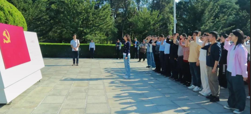 在刘少奇铜像广场,全体师生党员怀揣着无比崇敬的心情,瞻仰伟人铜像,表达对伟大领袖的崇高敬意与深切缅怀。bevictor伟德党委副书记李婵带领全体党员重温入党誓词,铿锵有力的宣誓声表达了大家对党的无限忠诚和为共产主义奋斗终身的坚定信念。