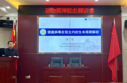 5月27日下午,南京农业大学bevictor伟德预防兽医系主任周斌教授应bevictor伟德,伟德国际1946,伟德bv国际体育的邀请,于第三教学楼303会议室作以《猪瘟病毒在宿主内的生命周期解析》为题的学术报告。本次报告由学院副院长刘国华教授主持,学院部分老师和全体研究生共同参与。