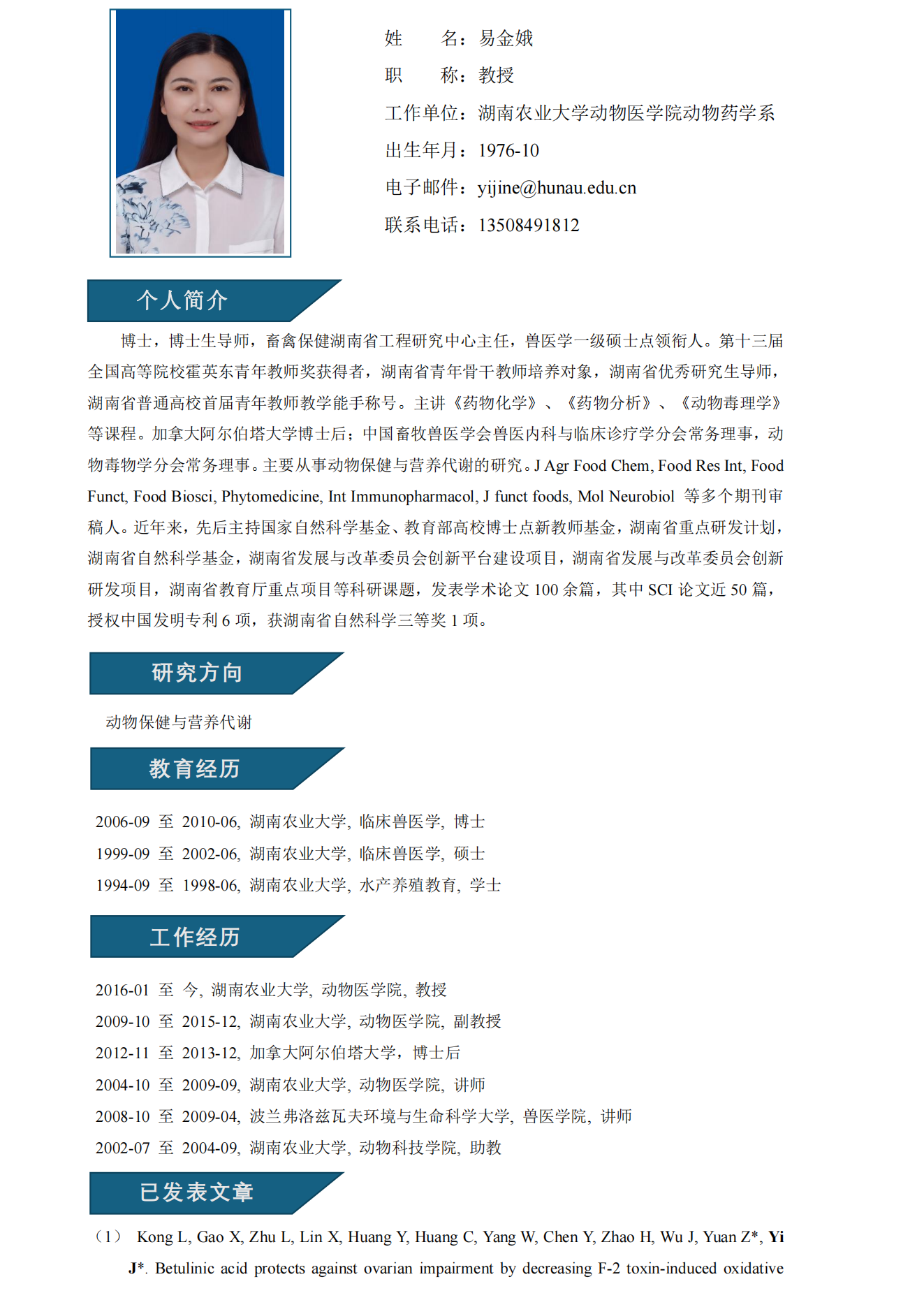易金娥教授简介