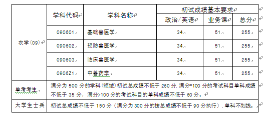 bevictor伟德兽医学进入复试的初试成绩基本要求(学术学位类)