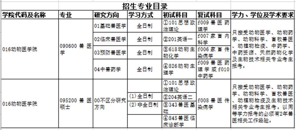 5、全日制/非全日制兽医硕士专业学位点:胡仕凤(13974972250)