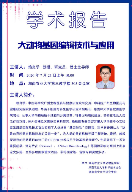 学术报告:大动物基因编辑技术与应用(赖良学)