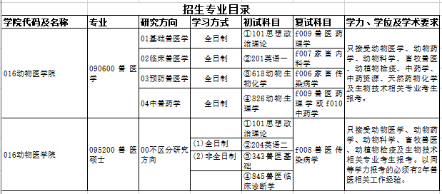 兽医硕士(专业学位类) |