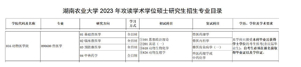 全日制/非全日制兽医硕士专业学位点:胡仕凤(13974972250)