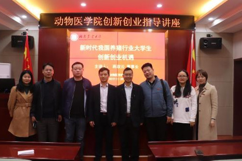 讲座伊始,伍小松书记对蒋政云董事长进行简要介绍,同时表达他对同学们能从本次讲座中得到一些启示的期望。接着,蒋董事长上台宣讲。蒋董事长就新时代我国养猪行业大学生创新创业机遇进行分析,并针对当代养猪行业所面临的问题进行总结。他总结有四点:首先,他认为非洲猪瘟对养猪行业有着很大的冲击。他介绍道,非洲猪瘟是今年在养猪行业遇到的重大灾难,这是因为人们缺乏有效的科学知识,在瘟病泛滥之前没能做出有效的预防疾病传播的措施,使非洲猪瘟的蔓延如此快;其次,他表示在环保的高压下,养猪行业的发展举步维艰。他解释道,企业在追求利益的同时还要注重生态,环保,健康等方面的问题。因此面对环境保护和追求利益的冲突,部分企业感到非常苦恼,他们的发展也由此变得困难;第三、如何提质增效也是当今养猪行业所面临的问题。他说道,当代社会矛盾是人民日益增长的美好生活需要与不平衡不充分的发展之间的矛盾。人们不仅要吃饱,还要吃好,因此如何提高产品质量成为了各企业所要思考的问题;最后,他提到随着智能时代的到来,养猪行业也在智能化。他以绿叶科技为例,讲述随着5G的到来,向系统化,智能化转型成为各个行业所面临的问题,绿叶科技正在向智能化发展走去,以摆脱现代问题的困扰。最后,蒋董事长就长沙绿叶科技的发展历程,企业文化,企业内涵做了详细讲解,并告诉同学们所谓创新就是创造新事物,实现新价值,创业就是创造新组织,实现新价值,创新创业的最终目的是一致的。
