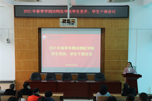 3月3日中午,bevictor伟德2021年春季学期学生党员、学生干部会议于动医楼T形教室召开。bevictor伟德党委副书记首道,学工办主任陈宇科,学工办副主任刘林艳,本科生辅导员赵建松、陈伶出席会议。bevictor伟德学生党员、学生干部、2018-2020级班长、团支书参加会议。会议由首书记主持。