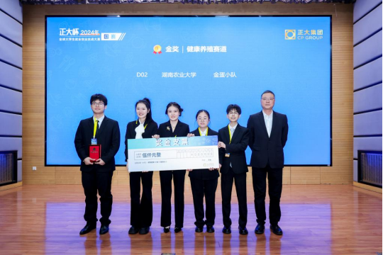 2025年1月15日,“正大杯”全球大学生就业创业实战大赛决赛在北京举行。在bevictor伟德孙志良教授的指导下,由学院兽医专业研究生李浩雨、黄培宏、傅裕、谭静、王可同学组成的金蛋小队荣获健康养殖赛道金奖。