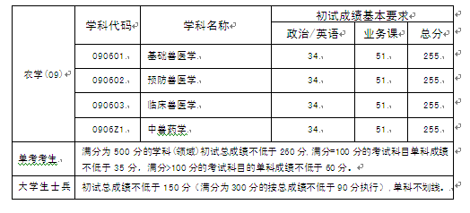 bevictor伟德兽医学进入复试的初试成绩基本要求(学术学位类)
