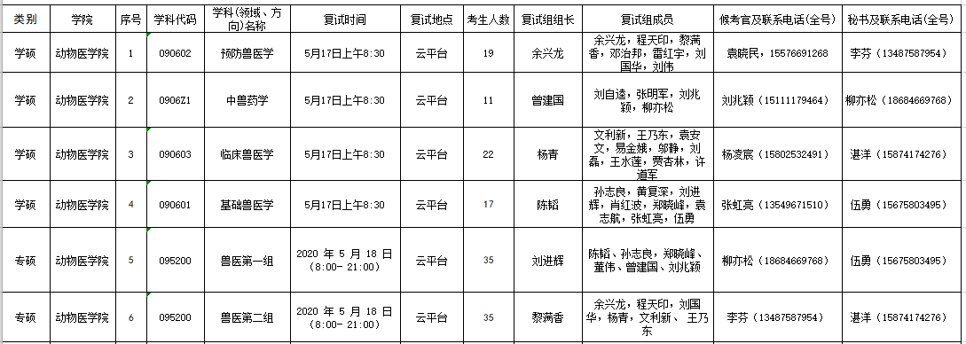 5、全日制/非全日制兽医硕士专业学位点:胡仕凤(13974972250)